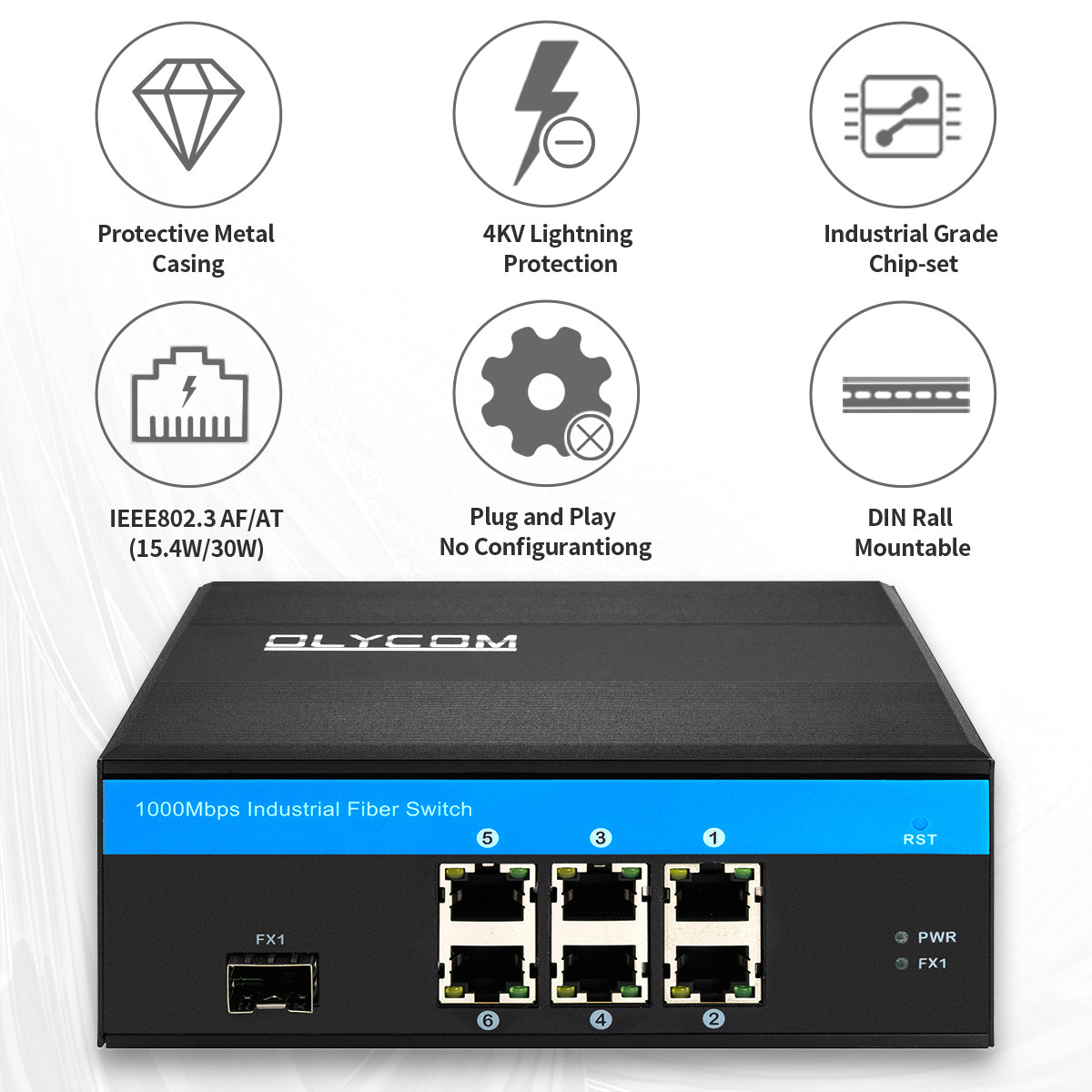 6 पोर्ट गीगाबिट इंडस्ट्रियल PoE अनमैनेज्ड स्विच